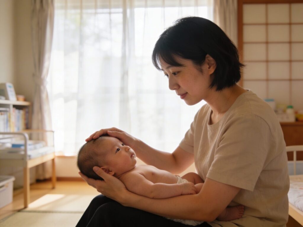 「成長すれば自然に改善する」というのは確かに多くの軽度ケースには当てはまります。しかし、向き癖の原因が身体的な問題(筋肉の緊張など)にある場合、放置するだけでは根本的な改善につながらないことがあります。お座りが始まると後頭部への圧力は減りますが、すでに変形してしまった骨格が自然に戻るかどうかは別問題です。