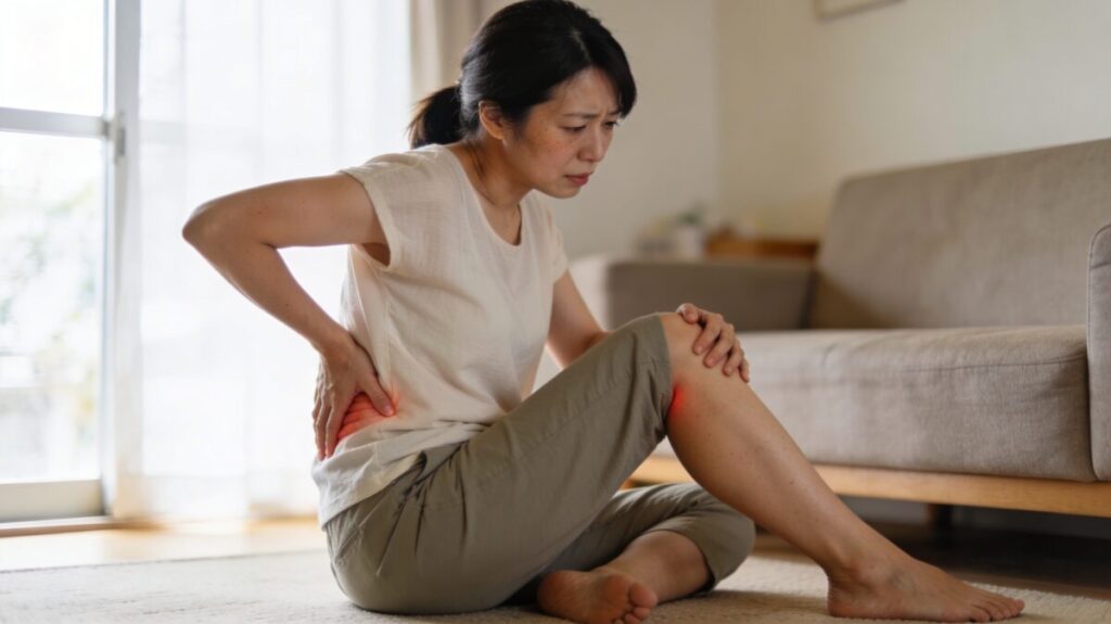 痛みが長く続くと、体は痛みを回避しようとして無意識に姿勢を変えます。それがまた別の部位への負荷につながり、腰だけでなく膝や首にも不調が出てくることがあります。